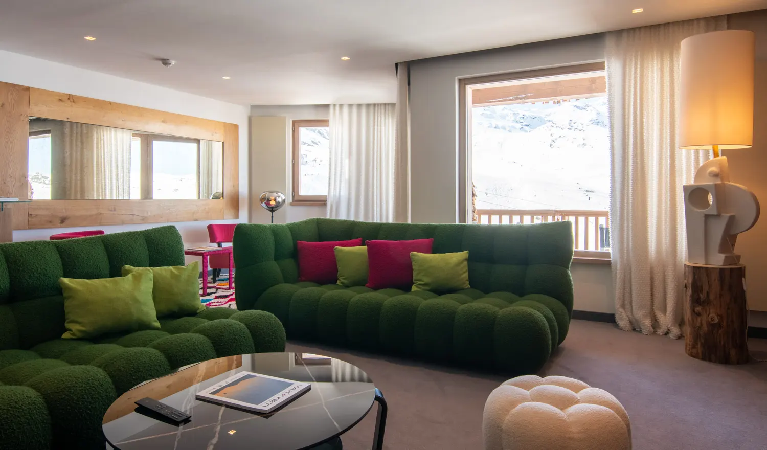 Un séjour grandiose dans un espace spacieux et accueillant, alliant confort et raffinement, pour créer des souvenirs chaleureux au cœur des montagnes.
